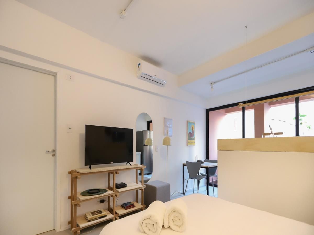 At the Magdalena Laura Building, overlooking the Copan and the Praça Roosevelt church, close to Casa do Porco, we debut the launch of exclusive Tabas apartments! Together with Planta.inc, we participate in the future of retrofit, restoring housing in historic districts of São Paulo. In Tabas apartments you will find modern and sophisticated furniture, kitchen equipped with utensils, crockery, pans, cutlery and all appliances, in addition to Smart TV, cable TV and Wi-Fi.