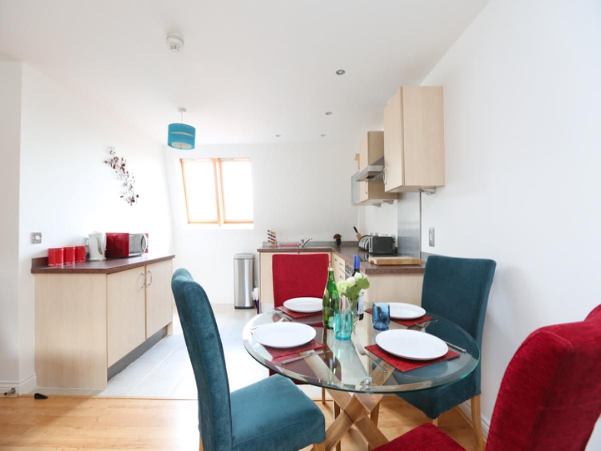 These apartments have family bathrooms with bath and shower and our two bedroom apartments also come with en-suites bathrooms within the master bedroom. The kitchens are fully equipped with all cooking amenities and include a washer dryer and dishwasher. The lounge is open plan living area with freeview television and an open plan dining area. Each apartment comes with free wireless broadband.