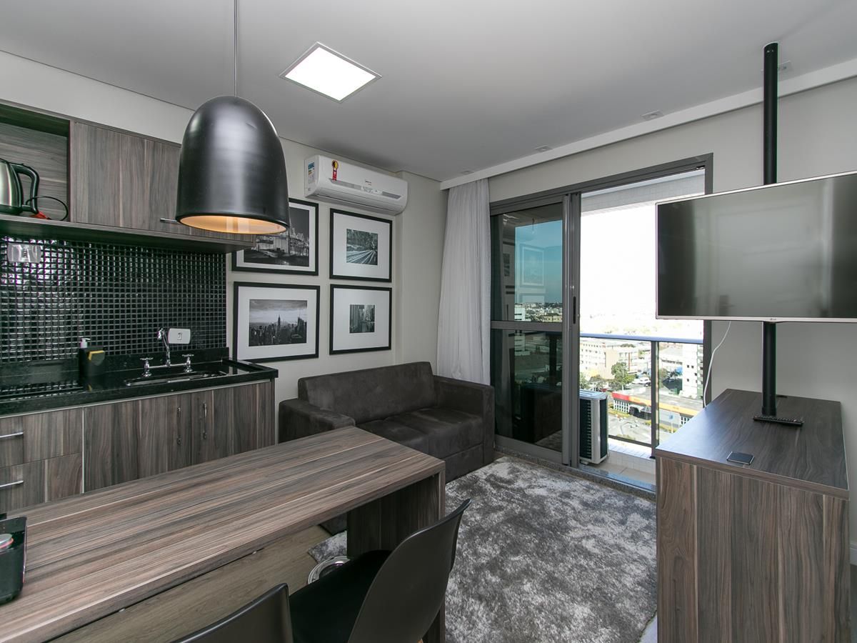 Apartment with great structure and comfort. Ideal for couples and travellers. In modern condominium in the city center. Located in one of the main avenues of Curitiba, easy to get around and access to public transportation, Airport and Railway. Best leisure and safety structure for the tranquillity of your stay. The apartment has a double bed, kitchenware and basic appliances for your stay. Cable tv and WIFI.