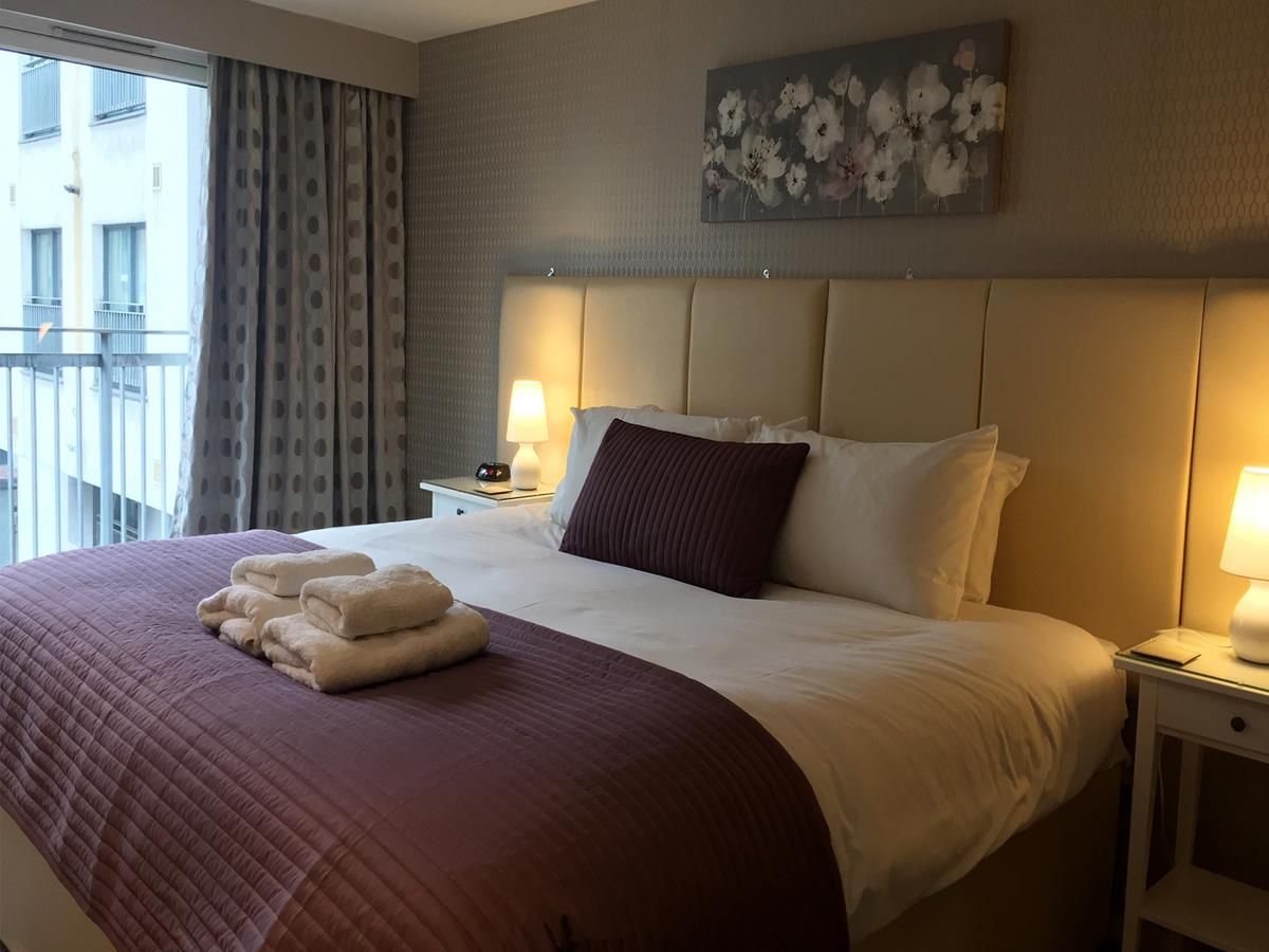 Glasgow Serviced Apartment in Tolbooth Merchant City for 6 people is centrally located on the edge of the vibrant Merchant City in a modern building adjacent to the historic Tolbooth Steeple at Glasgow Cross. Apartment has King master bedroom, King second bedroom and Double Sofa bed in open plan lounge.